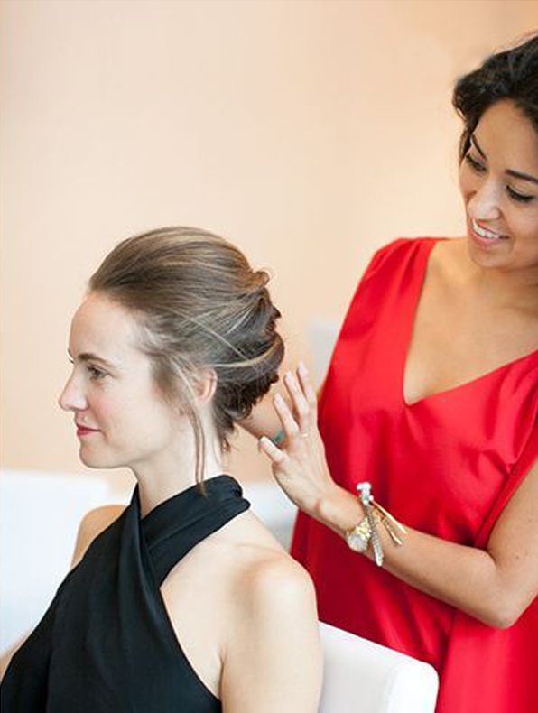 8 and 9- Arrange the ends. Spray hair lightly to hold the style.